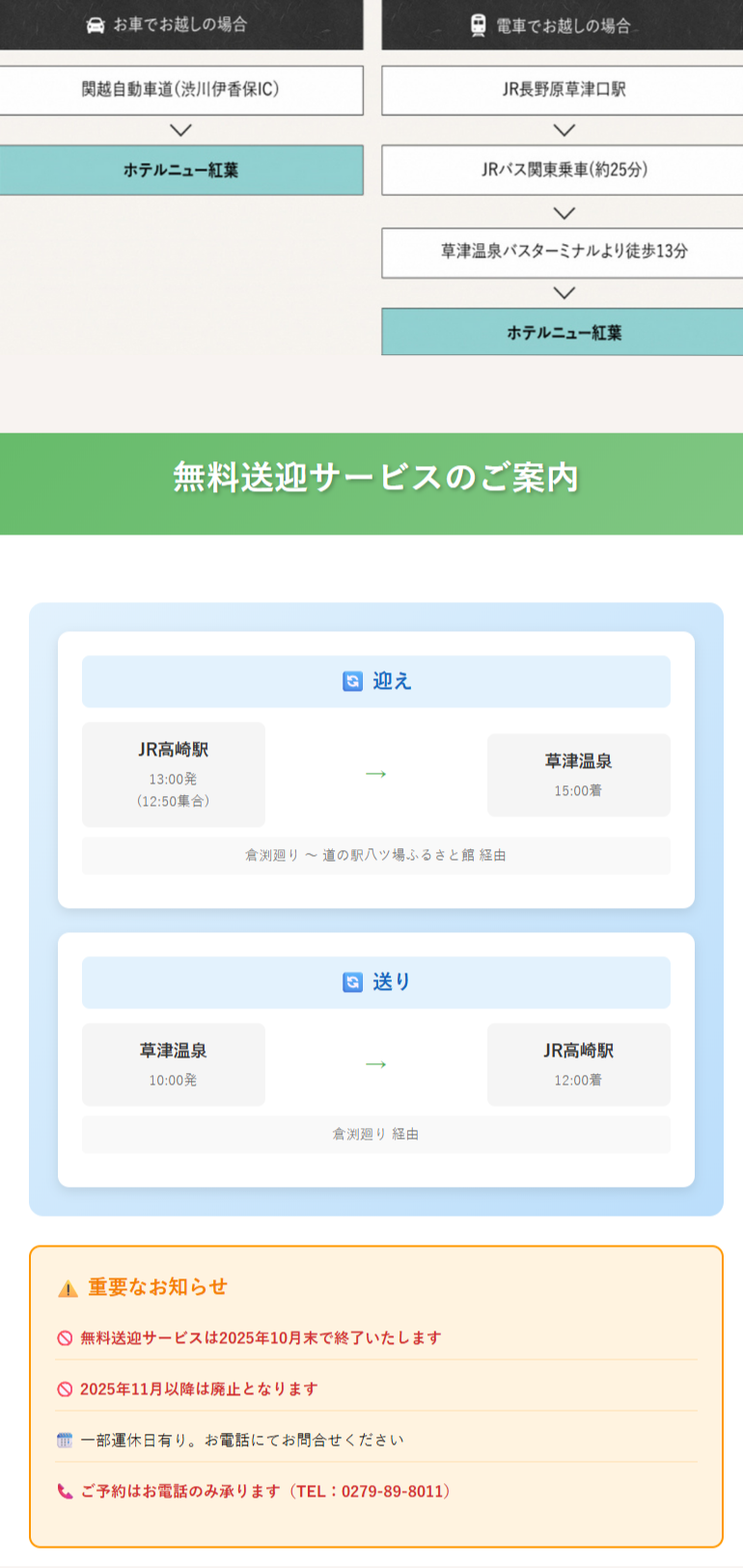 草津温泉ホテルニュー紅葉にご宿泊のお客様限定サービス!